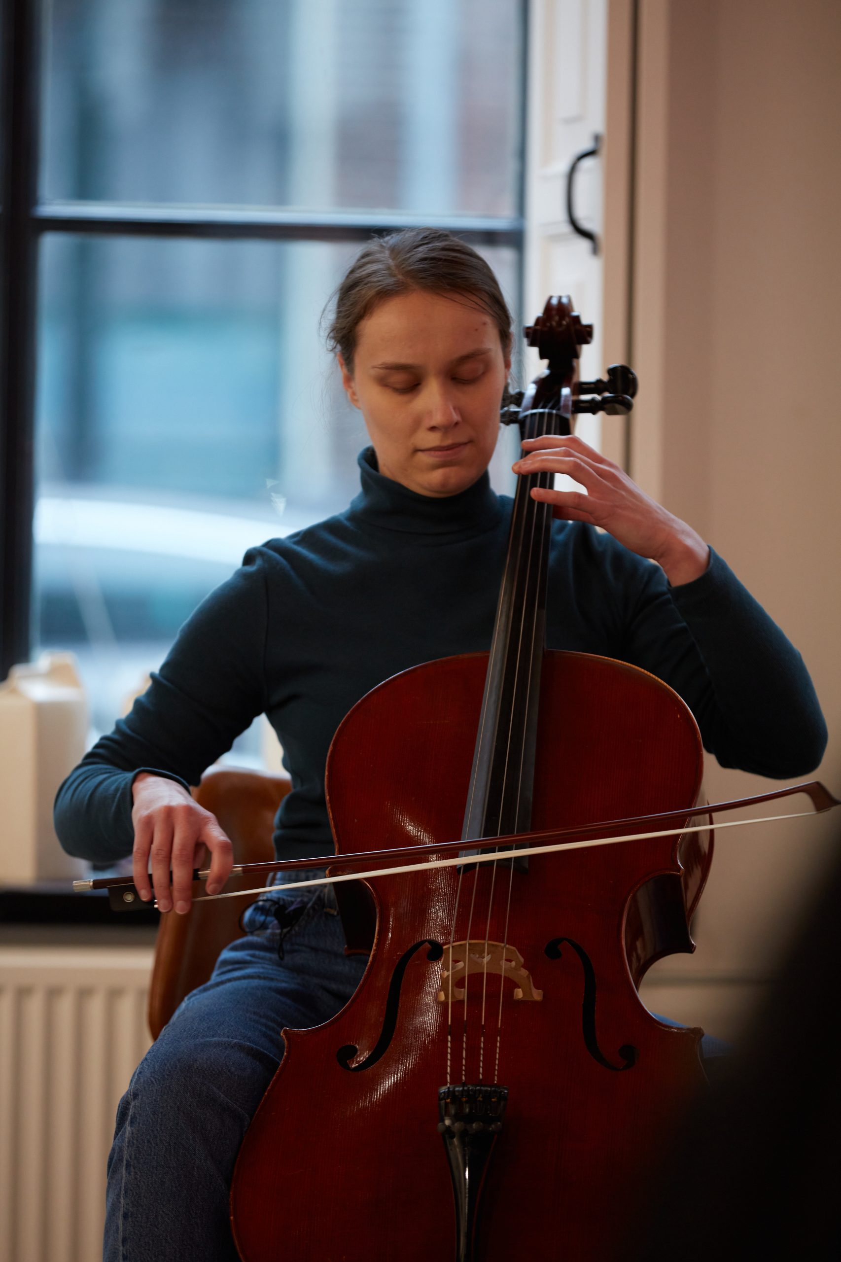 Astrid heeft een cello van Guust François uit de collectie van Het Muziekinstrumentenfonds in bruikleen.